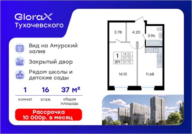 Прямая продажа от застройщика! Жилой Комплекс комфорт-класса. Продаётся 1-к квартира номер 178 общей площадью 41.6 кв.м. на 16-м этаже 30 этажного здания. Отделка Whitebox. Цена с учётом скидки. Особенности квартиры: - Линейная планировка - максимальная функциональность и удобство. - Гардеробная - удобство для хранения и организации вещей. - Балкон - открытое пространство для отдыха. Квартира с предчистовой отделкой (White box). Вам не придется заниматься черновыми и трудоёмкими работы, а чистовую отделку и дизайн - сделайте на свой вкус. Информация о комплексе: "Флагман" - современный жилой комплекс для тех, кто ценит комфорт, эстетику и личное пространство. Корпуса, выполненные в едином архитектурном коде, создают выразительный силуэт и формируют гармоничное городское пространство. Современная архитектура от одного из ведущих бюро страны сочетает лаконичность форм и внимание к деталям. Приватные дворы, озеленённые улицы и продуманная инфраструктура делают жизнь здесь по-настоящему комфортной.Благодаря удобному расположению и транспортной доступности, вы легко доберётесь в любую часть города. Транспортная доступность: - 9 мин. пешком до детского сада - 7 мин. до школы - 5 мин. до взрослой поликлиники - 1 мин. до автобусной остановки Внутренняя инфраструктура: Каждая деталь продумана для вашего удобства. Для прогулок и отдыха предусмотрен ландшафтный парк и пешеходный бульвар. Закрытые дворы оснащены детскими и спортивными площадками, а в каждом доме предусмотрены кладовые и колясочные. Комфортные гостевые зоны и зоны ожидания создают атмосферу уюта уже с первых шагов в дом. Все корпуса имеют удобный вход без ступеней и пандусов, обеспечивая лёгкий доступ для жителей любого возраста. Для автомобилистов предусмотрен одноэтажный паркинг с автоматической мойкой, а на первых этажах расположены коммерческие помещения, обеспечивающие повседневные потребности жителей.