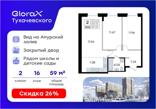 Узнайте подробности и подберите свою квартиру в GloraX Тухачевского — в отделе продаж уже сегодня.