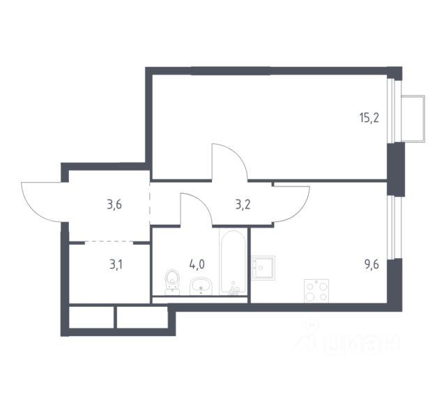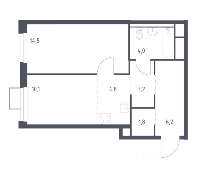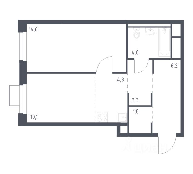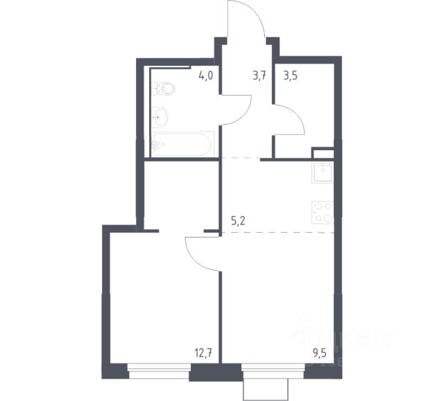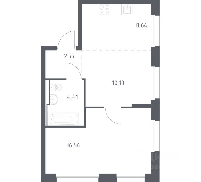 однокомнатная квартира; высокий этаж; гардеробная.