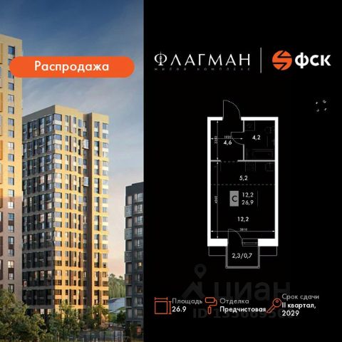 однокомнатная квартира; вид на море; высокий этаж; угловая.