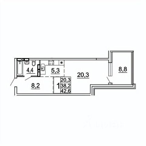 Уютное пространство для самостоятельной жизни Просторная прихожая 5,5 кв.м с местом для шкафа Кухня-столовая 16,8 кв.м место для ваших кулинарных экспериментов и отдыха за домашним кинотеатром Спальня 14,8 кв.м с выходом на лоджию, где можно наслаждаться свежим воздухом и красивым видом на окружающий пейзаж Гардеробная в спальне 2,8 кв.м позволит аккуратно разместить вещи, освободив место в комнате Ванная комната 4,5 кв.м с местом под стиральную машину
