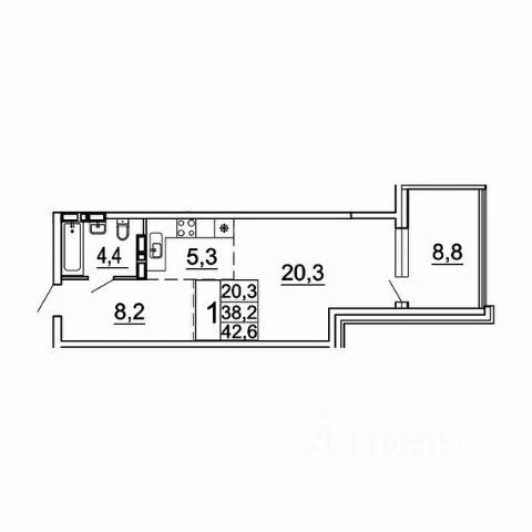 • ✅ Минимальная площадь: 42,6 м²