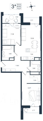 Просторная прихожая 4,7 кв.м с местом для гардероба и зоной для обуви, которая создает порядок и комфорт в квартире Кухня-гостиная 16,4 кв.м с выходом на лоджию создает комфортное пространство для приготовления еды и приятного времяпровождения в кругу семьи Увеличенная лоджия 6,2 кв.м, где можно наслаждаться свежим воздухом и красивыми панорамами Уютная спальня 11,6 кв.м для отдыха родителей после рабочего дня Удобная детская комната 10,5 кв.м для игр и занятий Два раздельных санузла для комфорта гостей и всей семьи