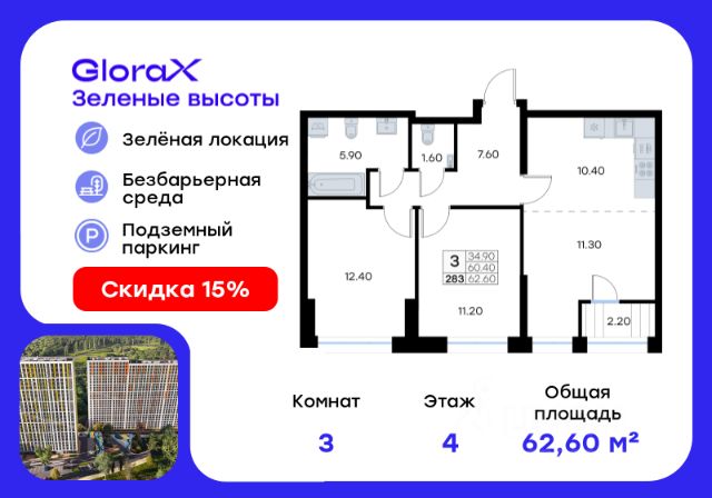 Продается 3-комн. квартира на 4-м этаже в жилом квартале GloraX Зелёные высоты — проекте в тихой зелёной локации. Общая площадь квартиры 62,60 кв. м, из которых 34,90 кв. м включая 34,90 кв. м жилого пространства и 10,40 кв. м кухни. Номер квартиры - 283. Преимущества квартиры: просторная 2 к.кв.; лоджия. Преимущества проекта: • Идеальное сочетание городской и загородной жизни • Сдаем в 2025 году • Уютный зелёный район с развитой инфраструктурой • Великолепные виды на Вечнозеленый сквер и лесопарк на 150 Га • Видеонаблюдение, IP-домофон, Wi-Fi на территории, • Дизайнерские входные группы • Безбарьерная среда, колясочные, туалеты на 1 этаже, лапомойки • Эксклюзивное благоустройство территории • Подземный паркинг на 235 машино-мест с лифтом на жилые этажи • Индивидуальные кладовые от 3 до 7 кв. м • Черновая отделка для реализации любых дизайнерских идей GloraX Зелёные высоты — современный жилой проект, сочетающий преимущества городской и пригородной жизни. Комплекс тщательно продуман для максимального удобства и обеспечения безопасности жителей. Квартал расположен в зеленом, живописном и активно развивающемся районе Зеленый Угол, вдали от серой массовой застройки. Жители GloraX Зелёные высоты смогут насладждаться прогулками в Вечнозелёном сквере или лесопарке. В непосредственной близости находятся остановки общественного транспорта и автомобильный подъезд со стороны Нейбута. Скоро также появится выездом на трассу Де-Фриз-Седанка, что обеспечит быстрый доступ в любую часть города и пригород. Проект включает 2 корпуса, каждый из которых спроектирован с акцентом на комфорт, безопасность и современный образ жизни. В комплексе предусмотрен подземный паркинг на 235 машиномест с доступом прямо с жилых этажей. Паркинг оборудован современными системами видеонаблюдения, контроля въезда-выезда и пожаротушения. Цокольный этаж здания отведен под индивидуальные кладовые площадью от 3 до 7 квадратных метров, которые можно использовать для хранения сезонных вещей. Доступ к кладовым - на лифте с жилых этажей. Территория жилого квартала благоустроена и включает игровые зоны и спортивные площадки для детей различных возрастных групп, уютные зоны отдыха со скамейками и универсальную воркаут-площадку для активного досуга. В шаговой доступности располагаются все необходимые объекты социальной инфраструктуры. Узнайте больше в отделе продаж — выберите свою квартиру в GloraX Зелёные высоты уже сегодня!