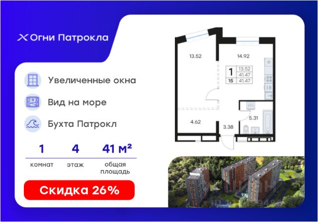DNV-05-2.2-04-003-082 Светлая уютная студия с большим санузлом и предчистовой отделкой в жилом комплексе "ДОМ на Востоке". Общая площадь 27,1 м2. Срок сдачи 1 кв. 2027 г. Монолитный дом. "ДОМ на Востоке" жилой квартал с авторской архитектурой от известного бюро KAMEN, благоустроенной территорией и собственной развитой инфраструктурой. Это флагманский проект от государственного застройщика ДОМ.РФ Девелопмент, расположенного в сердце живописной бухты Патрокл. Проект находится в перспективном, быстроразвивающемся районе города со всей инфраструктурой на берегу залива. Всего 8 минут пешком и вы на Леопардовой набережной совершаете променад или любуетесь завораживающими закатами и рассветами. До центра города и крупных торговых центров легко добраться за 20 минут на автомобиле. Преимущества лота - Эргономичная планировка - Высокий потолок 2,9 м в чистоте - Большой совмещенный санузел 4,9 м2 - Корзина для кондиционера - Ниша для встроенного шкафа Отделка: В квартире будет выполнена предчистовая отделка. - Возведены перегородки из керамзита-цементных блоков - Оштукатурены стены - Выполнена стяжка пола - Произведена разводка трубопроводов, электричества, вентиляции и кондиционирования. Разводка отопления осуществляется внутри стяжки (горизонтальная), выводы под радиаторы выведены из стены. - Установлены радиаторы с терморегулятором - Выполнена шумоизоляция по полу - Установлены двухкамерные стеклопакеты и металлическая входная дверь - Заведен интернет кабель до слаботочного щита в квартире - Проведены коммуникации под установку кондиционера К моменту выдачи ключей все шумные работы будут завершены. Вам останется самая приятная часть ремонта выбор покрытия стен и пола, сантехники, мебели и аксессуаров. Инфраструктура На первых этажах домов будет все необходимое для жизни: магазины, кафе, аптеки, салоны красоты и многое другое. А для семей с детьми предусмотрены детские сады, безопасные игровые площадки и игровые комнаты. Паркинг: подземный отапливаемый с видеонаблюдением Для удобства жителей комплекса предусмотрен теплый паркинг в доме. Теперь не придется искать место для парковки, а также чистить автомобиль от снега или прогревать его в холодное время года. В паркинге также расположены кладовые помещения для хранения сезонных вещей и спортивного инвентаря. Условия покупки Продажа от надёжного государственного застройщика ДОМ.РФ Девелопмент с использованием эскроу-счетов. 100% оплата или ипотека. Сейчас действуют особые предложения по льготной ипотеке на период строительства.
