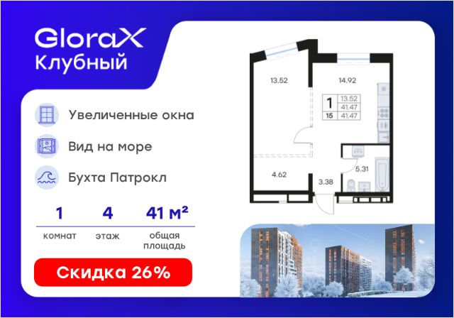 DNV-06-02-04-006-067 Современная 2-комнатная квартира классического формата с большой светлой гостиной в жилом комплексе "ДОМ на Востоке". Общая площадь 51,4 м2. Срок сдачи 3 кв. 2027 г. Монолитный дом. "ДОМ на Востоке" жилой квартал с авторской архитектурой от известного бюро KAMEN, благоустроенной территорией и собственной развитой инфраструктурой. Это флагманский проект от государственного застройщика ДОМ.РФ Девелопмент, расположенного в сердце живописной бухты Патрокл. Проект находится в перспективном, быстроразвивающемся районе города со всей инфраструктурой на берегу залива. Всего 8 минут пешком и вы на Леопардовой набережной совершаете променад или любуетесь завораживающими закатами и рассветами. До центра города и крупных торговых центров легко добраться за 20 минут на автомобиле. Преимущества лота - Высокий потолок 2,9 м - Гардеробная комната - Большая кухня - Радиусное остекление панорамные виды - Повышенная инсоляция - 4 окна в кухне-гостиной - 2 корзины для кондиционера Отделка: Квартира сдается в черновой отделке. Инфраструктура На первых этажах домов будет все необходимое для жизни: магазины, кафе, аптеки, салоны красоты и многое другое. А для семей с детьми предусмотрены детские сады, безопасные игровые площадки и игровые комнаты. Паркинг: подземный отапливаемый с видеонаблюдением Для удобства жителей комплекса предусмотрен теплый паркинг в доме. Теперь не придется искать место для парковки, а также чистить автомобиль от снега или прогревать его в холодное время года. В паркинге также расположены кладовые помещения для хранения сезонных вещей и спортивного инвентаря. Условия покупки Продажа от надёжного государственного застройщика ДОМ.РФ Девелопмент с использованием эскроу-счетов. 100% оплата или ипотека. Сейчас действуют особые предложения по льготной ипотеке на период строительства.