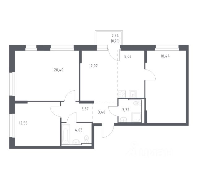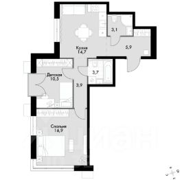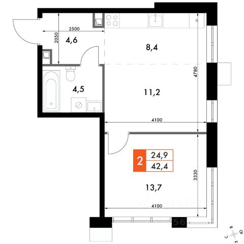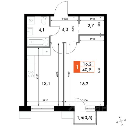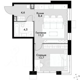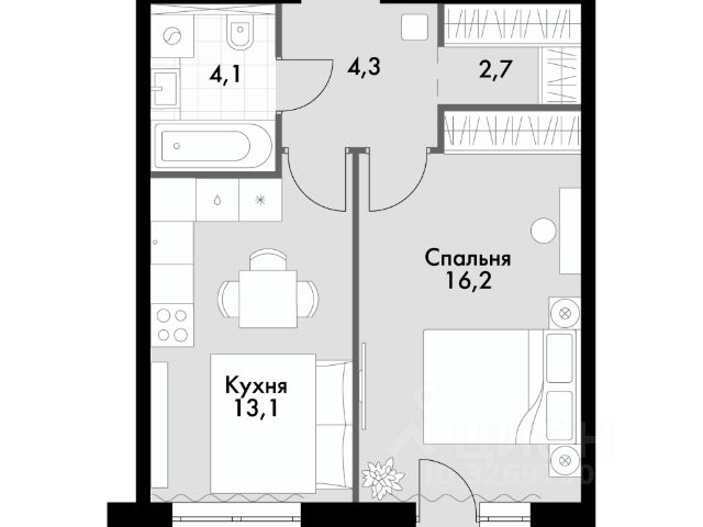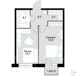 однокомнатная квартира; гардеробная.
