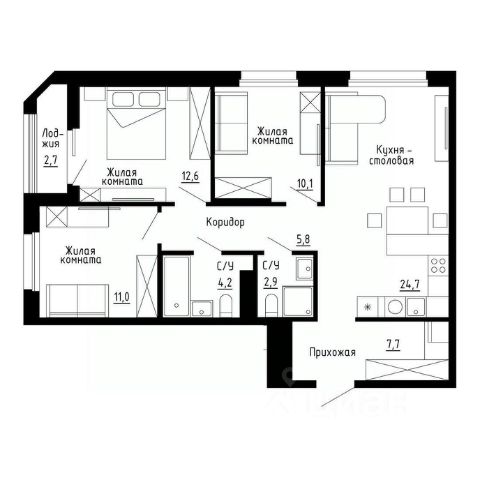 внушительный выбор функциональных и просторных планировочных решений, предусматривающих возможность самостоятельного зонирования площади и реализации любых дизайнерских решений в соответствии с индивидуальными потребностями семьи, доступны варианты недвижимости с 2 санузлами;