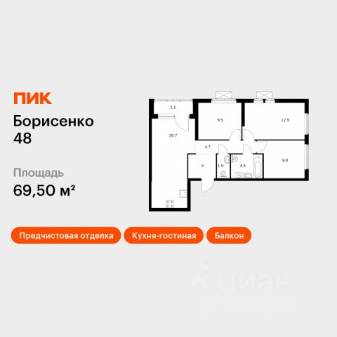 Продаётся 3-комн. квартира площадью 69,5 кв.м на 6 этаже 28 этажного дома (Корпус 2, Секция 2) проекта ПИК Борисенко 48. Светлый просторный подъезд на уровне земли, функциональная планировка, большие окна, предчистовая отделка. "Борисенко 48" - небольшой квартал в Первомайском районе, в 15 минутах пути на автомобиле от центра Владивостока. С верхних этажей откроется живописный вид на город и сопки. В проекте всего четыре дома и подземный паркинг, в который можно будет спуститься на лифте. Высота домов от 17 до 30 этажей - благодаря переменной этажности солнце будет лучше освещать двор и квартиры. На первых этажах откроются пекарни, кафе, магазины и другие сервисы - это удобно, когда внезапно закончится хлеб или захочется побаловать себя горячим кофе. Из каждого дома будет выход в уютный двор-парк - это закрытая территория для отдыха, где растут цветы и деревья, оборудованы детские и спортивные площадки. Рядом с "Борисенко 48" появится также детский сад для 150 малышей. В пешей доступности есть всё необходимое для комфортной жизни: школы, детские сады, поликлиника и магазины. До крупных торговых центров "Калина Молл" и "Луговая", а также супермаркета "Реми" - всего 5 минут на машине. А до озера на Сафонова, которое отлично подходит для прогулок и отдыха, можно дойти пешком за 9 минут. Живописная Леопардовая набережная - в 10 минутах на автомобиле. Из квартала можно будет выехать как на улицу Борисенко, так и на улицу Сафонова. Артикул 918359 (Застройщик ООО "СЗ "Юстина")