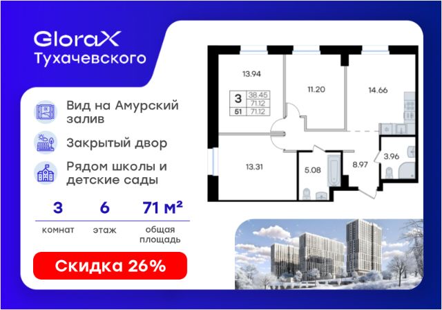 Узнайте подробности и подберите свою квартиру в GloraX Тухачевского — в отделе продаж уже сегодня.