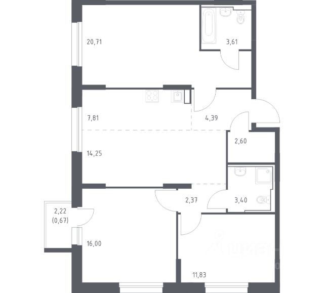 трехкомнатная квартира; вид на море; угловая; 2 санузла.