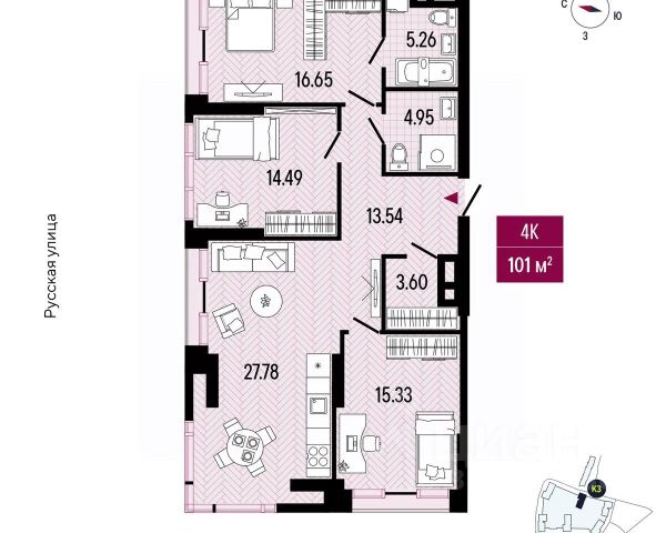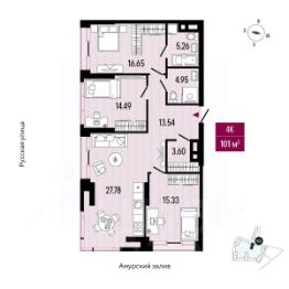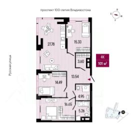Продаётся 2-комнатная квартира в строящемся доме (Дом 3), срок сдачи: III-кв. 2026, общей площадью 46.56 кв.м., на 6 этаже. Новый жилой комплекс "Supreme" от застройщика "ДВ Капитал" расположен по адресу город Владивосток, Енисейская улица.