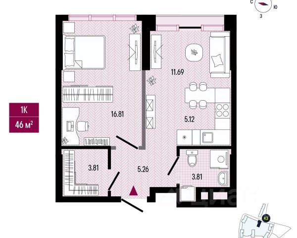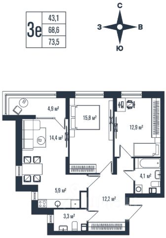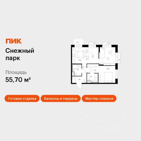 внушительный выбор функциональных и просторных планировочных решений, предусматривающих возможность самостоятельного зонирования площади и реализации любых дизайнерских решений в соответствии с индивидуальными потребностями семьи, доступны варианты недвижимости с 2 санузлами;