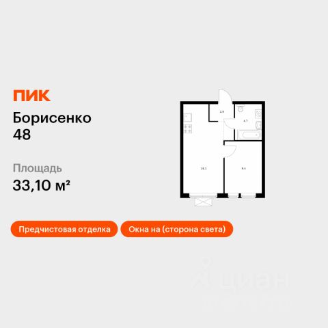 Продаётся 1-комн. квартира площадью 32,8 кв.м на 7 этаже 28 этажного дома (Корпус 2, Секция 2) проекта ПИК Борисенко 48. Светлый просторный подъезд на уровне земли, функциональная планировка, большие окна, предчистовая отделка. "Борисенко 48" - небольшой квартал в Первомайском районе, в 15 минутах пути на автомобиле от центра Владивостока. С верхних этажей откроется живописный вид на город и сопки. В проекте всего четыре дома и подземный паркинг, в который можно будет спуститься на лифте. Высота домов от 17 до 30 этажей - благодаря переменной этажности солнце будет лучше освещать двор и квартиры. На первых этажах откроются пекарни, кафе, магазины и другие сервисы - это удобно, когда внезапно закончится хлеб или захочется побаловать себя горячим кофе. Из каждого дома будет выход в уютный двор-парк - это закрытая территория для отдыха, где растут цветы и деревья, оборудованы детские и спортивные площадки. Рядом с "Борисенко 48" появится также детский сад для 150 малышей. В пешей доступности есть всё необходимое для комфортной жизни: школы, детские сады, поликлиника и магазины. До крупных торговых центров "Калина Молл" и "Луговая", а также супермаркета "Реми" - всего 5 минут на машине. А до озера на Сафонова, которое отлично подходит для прогулок и отдыха, можно дойти пешком за 9 минут. Живописная Леопардовая набережная - в 10 минутах на автомобиле. Из квартала можно будет выехать как на улицу Борисенко, так и на улицу Сафонова. Артикул 918380 (Застройщик ООО "СЗ "Юстина")