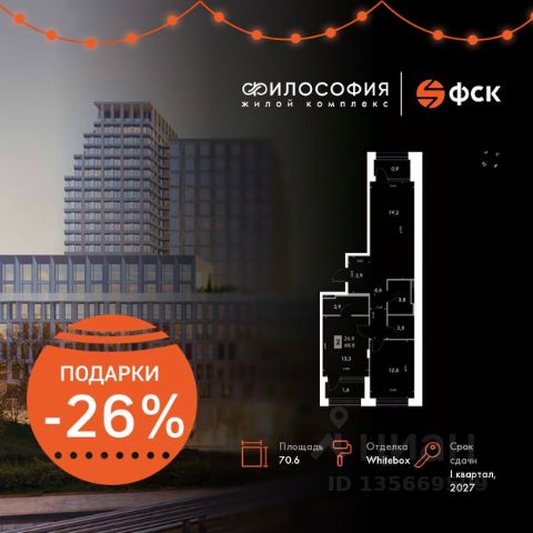 Продается студия с отделкой под ключ в ЖК "Гринхилс". Общая площадь квартиры — 28.5 кв. м, этаж 7 из 22. Тип дома — монолитный. Цена указана при 100% оплате. ЖК "Гринхилс" — жилой квартал комфорт-класса в выгодной локации микрорайона Зеленый угол: развивающегося современного жилого кластера во Владивостоке, внутри которого реализуются проекты нового поколения, преобразуя город. Полный набор необходимой инфраструктуры, транспортная доступность, исторические места города в шаговой доступности, а также окружение леса — все это и есть современный Зеленый угол. ТРАНСПОРНАЯ ДОСТУПНОСТЬ - 15 минут до центра; - 17 минут до ж/д вокзала; - 10 мин до пляжа Патрокл*; - 30 минут до автовокзала; - 50 минут до аэропорта. *В конце 2025 года планируется ввод дороги, соединяющей район с объездной Седанка-ДеФриз-Патрокл. ПЛАНОВЫЙ ВВОД В ЭКСПЛУАТАЦИЮ - 1 корпуса — 2 квартал 2026 года; - 2 и 3 корпусов — 2 квартал 2027 года. АРХИТЕКРУРНЫЕ И ИНЖЕНЕРНЫЕ РЕШЕНИЯ, ПОВЫШАЮЩИЕ КАЧЕСТВО ЖИЗНИ - Приватный безопасный каскадный двор-парк площадью более 4000м2, спроектирован как отдельный архитектурный объект с зонами, включающими в себя целый комплекс оборудования для детей и взрослых, озеленением и современным освещением, благодаря которому будет приятно гулять и отдыхать во дворе в вечернее и ночное время; - Доступ на территорию всего ЖК только для вас и ваших гостей; - Видеонаблюдение по периметру всего ЖК, безбарьерный доступ в дом с обеих сторон и современная домофония; - Дизайнерская отделка мест общего пользования, чтобы было приятно каждый раз, когда приходишь к себе домой; - Предусмотрено место для консьержа, а также туалеты на первых этажах для вашего комфорта; - Колясочные и три современных лифта c прямым доступом к индивидуальным кладовым и паркингу; - Трехэтажный приватный паркинг в 3-м корпусе: широкие проезды, индивидуальные машиноместа, безопасное и комфортное хранение вашего автопарка. МНОЖЕСТВО ПЛАНИРОВОЧНЫХ РЕШЕНИЙ И ВАРИАНТОВ ОТДЕЛКИ - Студии, 1к, 2к, 3к, 4к и квартиры евро-формата спроектированных по стандарту "Эргом2етрика", учитывающие различные сценарии жизни. Для вашего удобства для каждого варианта планировки вы можете выбрать подходящую готовности квартиры: - Без отделки; - Без отделки с выполненной стяжкой пола; - Whitebox — квартира, готовая к декорированию: стены подготовлены дя отделки, проведена электрика с учетом рекомендаций по расстановке мебели и бытовой техники, выровнен пол, в каждой квартире установлена взломостойкая входная дверь; - Whitebox plus — квартира, готовая к декорированию, в которой выполнена полностью отделка санузла; - Квартира с полностью готовой современной отделкой в светлых тонах. Во всех квартирах лоджии имеют панорамное остекление. Для вашего удобства в 1м корпусе открыт демонстрационный этаж, где вы сможете вживую увидеть все варианты отделок квартир. Записывайтесь на показ по контактам в этом объявлении.