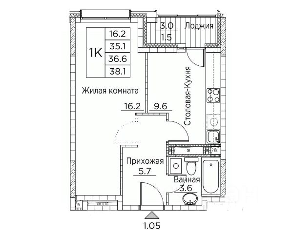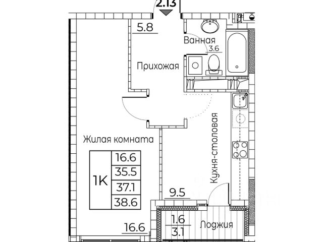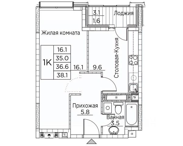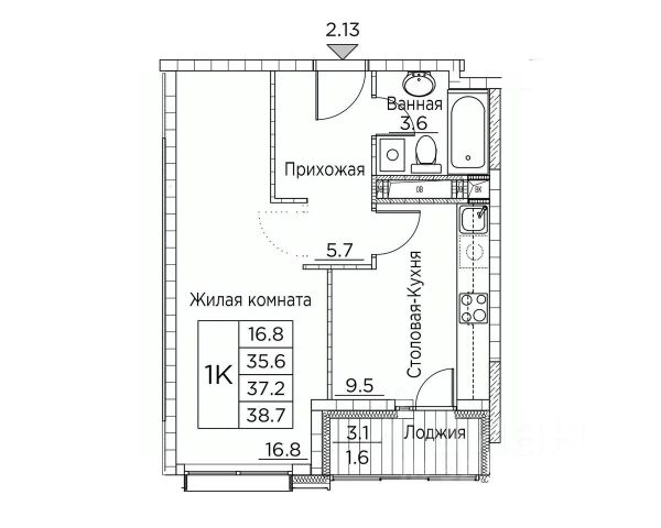 Общая площадь квартиры — 37.8 кв. м, этаж 19 из 20.