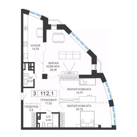 Продаётся 3-комнатная квартира в строящемся доме (Дом 1), срок сдачи: IV-кв. 2025, общей площадью 112.1 кв.м., на 8 этаже. ЖК представляет собой футуристический архитектурный ансамбль, состоящий из двух башен высотой 24 этажа и монументальной стилобатной части, на 5 этажах которой будут располагаться парковочная зона, а также современный торговый центр. Несмотря на слегка дерзкий вид башен, стремительно взмывающих вверх, они прекрасным образом гармонируют с окружающим пространством: солнечные лучи, играющие на зеркальной поверхности фасада, и отражающиеся на ней облака создают фантастический пространственный эффект! Высота наземной части зданий составляет 75 м., общая площадь насчитывает около 40 000 кв. м. - всё это 399 апартаментов свободной планировки, площадью от 97 до 200 кв. м. 192 апартамента. Обязательным условием при проектировании комплекса стало использование высококачественных современных технологий и материалов, проверенных не только мировыми лидерами в области строительства, но и лично нами в ходе реализации других проектов: - Технология муфтовых соединений арматуры каркаса - Стоечно-ригельные фасады SCHUECO - Использование альтернативных источников энергии для освещения территории благоустройства комплекса, а также мест общего пользования - Электронная система вентиляции и кондиционирования