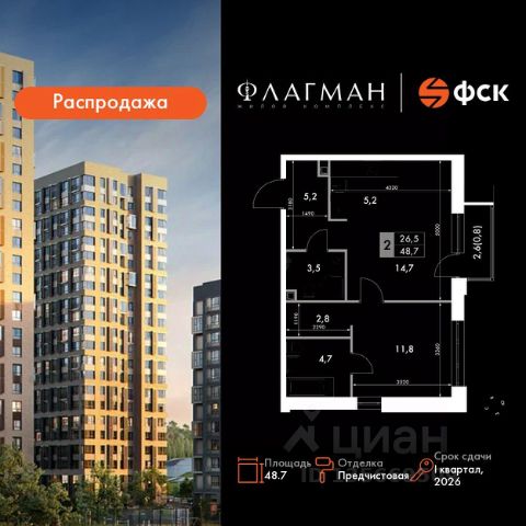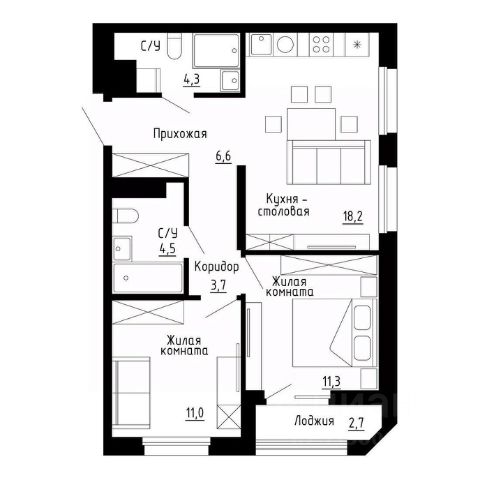 двухкомнатная квартира.