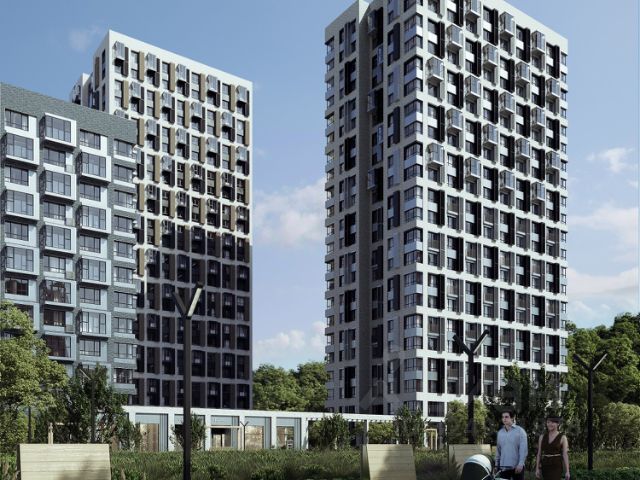 приватное благоустроенное пространство без машин для отдыха на внутренней стилобатной части комплекса с прогулочными зонами, детскими и спортивными площадками, куда могут попасть только жители квартала и их гости;