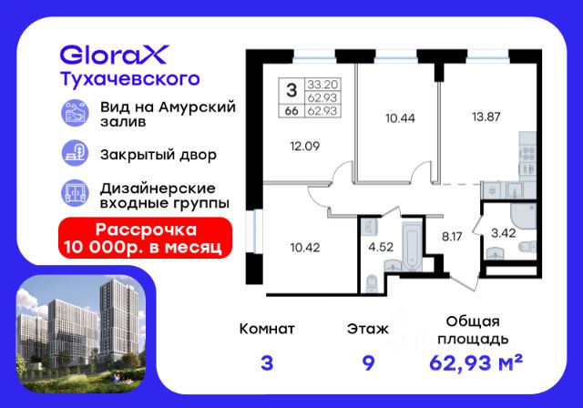 Прямая продажа от застройщика! Жилой Комплекс комфорт-класса. Продаётся 3-к квартира номер 603 общей площадью 55.1 кв.м. на 9-м этаже 12 этажного здания. Отделка Whitebox. Цена с учётом скидки. Особенности квартиры: - Угловая планировка - больше пространства для ваших идей. - Угловое остекление - свет и воздушность в каждой комнате. - Гостевой санузел - комфорт и удобство для ваших гостей. - Евроформат - просторное и удобное жилье с отличной планировкой. - Просторная кухня - место для семейных ужинов и кулинарных экспериментов. - Балкон - открытое пространство для отдыха. Квартира с предчистовой отделкой (White box). Вам не придется заниматься черновыми и трудоёмкими работы, а чистовую отделку и дизайн - сделайте на свой вкус. Информация о комплексе: "Флагман" - современный жилой комплекс для тех, кто ценит комфорт, эстетику и личное пространство. Корпуса, выполненные в едином архитектурном коде, создают выразительный силуэт и формируют гармоничное городское пространство. Современная архитектура от одного из ведущих бюро страны сочетает лаконичность форм и внимание к деталям. Приватные дворы, озеленённые улицы и продуманная инфраструктура делают жизнь здесь по-настоящему комфортной.Благодаря удобному расположению и транспортной доступности, вы легко доберётесь в любую часть города. Транспортная доступность: - 9 мин. пешком до детского сада - 7 мин. до школы - 5 мин. до взрослой поликлиники - 1 мин. до автобусной остановки Внутренняя инфраструктура: Каждая деталь продумана для вашего удобства. Для прогулок и отдыха предусмотрен ландшафтный парк и пешеходный бульвар. Закрытые дворы оснащены детскими и спортивными площадками, а в каждом доме предусмотрены кладовые и колясочные. Комфортные гостевые зоны и зоны ожидания создают атмосферу уюта уже с первых шагов в дом. Все корпуса имеют удобный вход без ступеней и пандусов, обеспечивая лёгкий доступ для жителей любого возраста. Для автомобилистов предусмотрен одноэтажный паркинг с автоматической мойкой, а на первых этажах расположены коммерческие помещения, обеспечивающие повседневные потребности жителей.