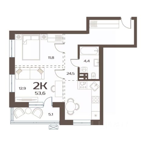 Уютное пространство для самостоятельной жизни Просторная прихожая 5,4 кв.м с местом для шкафа Кухня-столовая 16,7 кв.м место для ваших кулинарных экспериментов и отдыха за домашним кинотеатром Спальня 14,7 кв.м с выходом на лоджию, где можно наслаждаться свежим воздухом и красивым видом на окружающий пейзаж Гардеробная в спальне 2,5 кв.м позволит аккуратно разместить вещи, освободив место в комнате Ванная комната 5,5 кв.м с местом под стиральную машину