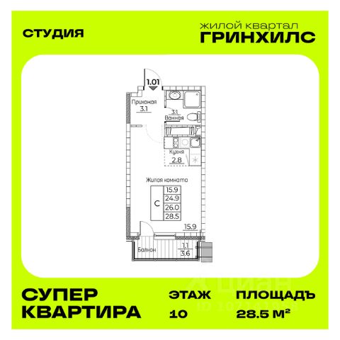 Продается студия с черновой отделкой в ЖК "Гринхилс". Общая площадь квартиры — 27.3 кв. м, этаж 5 из 20. Тип дома — монолитный. Цена указана при 100% оплате. ЖК "Гринхилс" — жилой квартал комфорт-класса в выгодной локации микрорайона Зеленый угол: развивающегося современного жилого кластера во Владивостоке, внутри которого реализуются проекты нового поколения, преобразуя город. Полный набор необходимой инфраструктуры, транспортная доступность, исторические места города в шаговой доступности, а также окружение леса — все это и есть современный Зеленый угол. ТРАНСПОРНАЯ ДОСТУПНОСТЬ - 15 минут до центра; - 17 минут до ж/д вокзала; - 10 мин до пляжа Патрокл*; - 30 минут до автовокзала; - 50 минут до аэропорта. *В конце 2025 года планируется ввод дороги, соединяющей район с объездной Седанка-ДеФриз-Патрокл. ПЛАНОВЫЙ ВВОД В ЭКСПЛУАТАЦИЮ - 1 корпуса — 2 квартал 2026 года; - 2 и 3 корпусов — 2 квартал 2027 года. АРХИТЕКРУРНЫЕ И ИНЖЕНЕРНЫЕ РЕШЕНИЯ, ПОВЫШАЮЩИЕ КАЧЕСТВО ЖИЗНИ - Приватный безопасный каскадный двор-парк площадью более 4000м2, спроектирован как отдельный архитектурный объект с зонами, включающими в себя целый комплекс оборудования для детей и взрослых, озеленением и современным освещением, благодаря которому будет приятно гулять и отдыхать во дворе в вечернее и ночное время; - Доступ на территорию всего ЖК только для вас и ваших гостей; - Видеонаблюдение по периметру всего ЖК, безбарьерный доступ в дом с обеих сторон и современная домофония; - Дизайнерская отделка мест общего пользования, чтобы было приятно каждый раз, когда приходишь к себе домой; - Предусмотрено место для консьержа, а также туалеты на первых этажах для вашего комфорта; - Колясочные и три современных лифта c прямым доступом к индивидуальным кладовым и паркингу; - Трехэтажный приватный паркинг в 3-м корпусе: широкие проезды, индивидуальные машиноместа, безопасное и комфортное хранение вашего автопарка. МНОЖЕСТВО ПЛАНИРОВОЧНЫХ РЕШЕНИЙ И ВАРИАНТОВ ОТДЕЛКИ - Студии, 1к, 2к, 3к, 4к и квартиры евро-формата спроектированных по стандарту "Эргом2етрика", учитывающие различные сценарии жизни. Для вашего удобства для каждого варианта планировки вы можете выбрать подходящую готовности квартиры: - Без отделки; - Без отделки с выполненной стяжкой пола; - Whitebox — квартира, готовая к декорированию: стены подготовлены дя отделки, проведена электрика с учетом рекомендаций по расстановке мебели и бытовой техники, выровнен пол, в каждой квартире установлена взломостойкая входная дверь; - Whitebox plus — квартира, готовая к декорированию, в которой выполнена полностью отделка санузла; - Квартира с полностью готовой современной отделкой в светлых тонах. Во всех квартирах лоджии имеют панорамное остекление. Для вашего удобства в 1м корпусе открыт демонстрационный этаж, где вы сможете вживую увидеть все варианты отделок квартир. Записывайтесь на показ по контактам в этом объявлении.