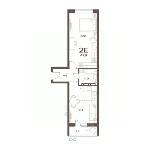 Уютное пространство для самостоятельной жизни Просторная прихожая 5,4 кв.м с местом для шкафа Кухня-столовая 16,7 кв.м место для ваших кулинарных экспериментов и отдыха за домашним кинотеатром Спальня 14,7 кв.м с выходом на лоджию, где можно наслаждаться свежим воздухом и красивым видом на окружающий пейзаж Гардеробная в спальне 2,5 кв.м позволит аккуратно разместить вещи, освободив место в комнате Ванная комната 4,5 кв.м с местом под стиральную машину
