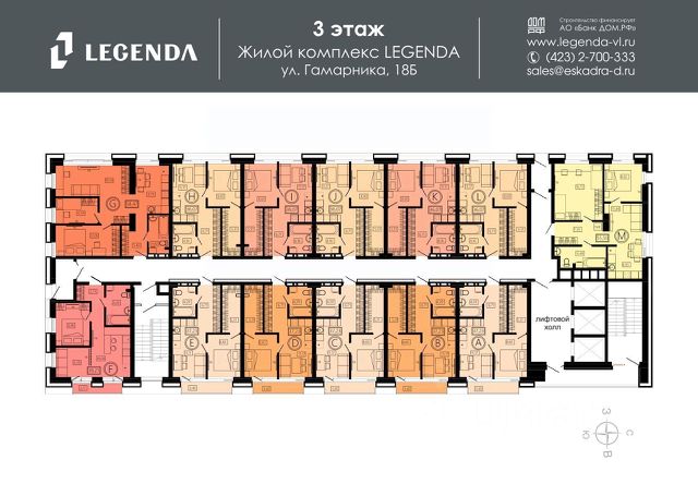 -200 000р. молодожёнам при покупке квартиры, суммируется с другими спецпредложениями! Подробности уточняйте в отделе продаж. ДОМ СДАН! Преимущества: - панорамные виды благодаря эркерам; - увеличенные оконные проемы; - келлеры в стилобате; - панорамные лифты; - широкие коридоры в местах общего пользования; - отапливаемый паркинг; - закрытая территория; - развитая инфраструктура района; - высокая транспортная доступность. Жилой комплекс, расположенный неподалёку от станции Чайка, состоит из двух 23-этажных корпусов с 2-уровневым отапливаемым подземным паркингом, индивидуальными келлерами в стилобате, закрытой придомовой территорией и комплексным видеонаблюдением. Он представляет не что иное, как воплощение комфорта нового времени, грамотно интегрированного в ландшафт естественной природной среды, вдали от шумного центра города. Широкоформатные квартиры свободной планировки формата Smart-vision площадью от 39,56 кв. м до 81,9 кв. м позволяют реализовать любые планировочные решения, а эркерные окна увеличенного размера открывают головокружительный вид на Амурский залив, низководный мост и завораживающий лесной массив. Проектом предусмотрены широкие коридоры мест общего пользования 2,4 м, просторный лифтовой холл площадью 37 кв. м и вестибюль 15,68 кв. м. Панорамные скоростные лифты на внешней стороне фасада дарят ощущение абсолютной свободы, а много солнечного света, проникающего в кабину, и дальний обзор прилегающей местности служат превосходными преимуществами для людей, которые испытывают дискомфорт при пребывании в закрытом пространстве. Инвестиционную привлекательность обеспечивает возможность приобретения коммерческой недвижимости со стабильным потоком клиентов для организации бизнеса или сдачи пространств в аренду. Комплекс расположен в непосредственной близости от главной дорожной развязки "Федеральная трасса Аэропорт Де фриз Шамора Патрокл Центр" (А -370) и объездной дороги "Чапаева Кирова", остановка "Стела" в 5 минутах (500 м) ходьбы, "13 километр" в 5 минутах (450 м), "Академическая" в 9 минутах (800 м), ж/д станция "Чайка" в 15 минутах (1,5 км). Развита социальная инфраструктура микрорайона, поблизости: пляж, медицинская клиника, стоматология, детский сад, школа, почта, торговый центр, фитнес-клуб, центр современного искусства и конноспортивный клуб.
