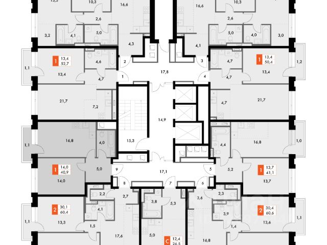 Высокоскоростные бесшумные лифты Thyssenkrupp Elevators со скоростью 4,5 м/с (в каждой из башен по 4 лифта) ;
