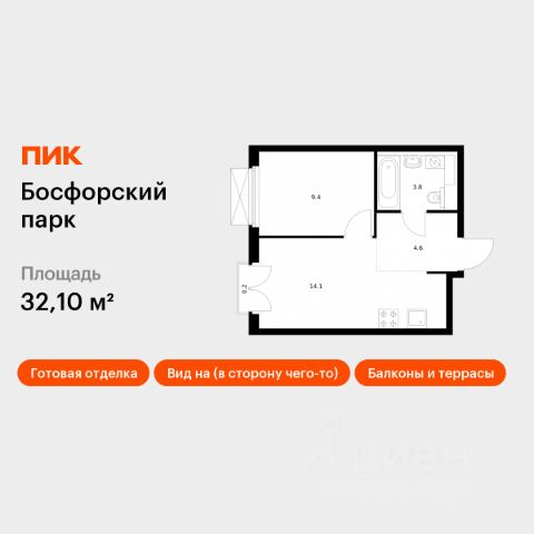 Продаётся 1-комн. квартира площадью 30,4 кв.м на 9 этаже 9 этажного дома (Корпус 4, Секция 1) проекта ПИК Босфорский парк. Светлый просторный подъезд на уровне земли, функциональная планировка, большие окна, c отделкой. Жилой квартал "Босфорский парк" расположен на юге Владивостока, в районе живописной бухты Патрокл. Из окон домов будет открываться прекрасный вид на залив и лес. Дорога до центра Владивостока на автомобиле займёт 20 минут. В "Босфорском парке" появится 20 жилых корпусов с магазинами, кафе и полезными сервисами на первых этажах. На территории проекта предусмотрены два многоуровневых надземных паркинга. В квартале будет много мест для отдыха и активных игр, три вида парков и даже родник, который будет перетекать в ручей с порогами и препятствиями. На территории парков появятся амфитеатры и террасы. Здесь жители смогут отдыхать, гулять, общаться, учиться или работать на свежем воздухе. На естественных склонах будут обустроены игровые зоны для детей - с горками, сетками, канатами и скалолазными зацепами. Всё это - новый формат благоустройства "Многоуровневый ландшафт", который разработан специально для регионов с перепадами высот. Ещё на этапе проектирования архитекторы учли все особенности рельефа, чтобы создать органичное пространство. Артикул 938446 (Застройщик ООО "СПЕЦИАЛИЗИРОВАННЫЙ ЗАСТРОЙЩИК ПИК-ПРИМОРЬЕ")