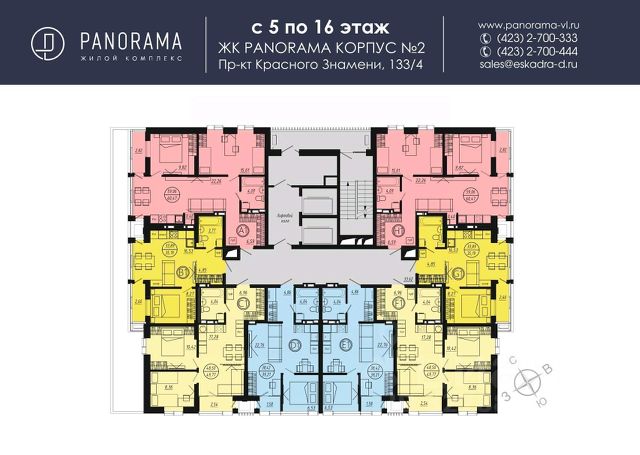 Преимущества: - панорамное остекление балконов; - высота потолков 2,9 м; - оконное остекление увеличенного размера; - широкие коридоры в местах общего пользования; - отапливаемый паркинг; - закрытая территория; - развитая инфраструктура района; - высокая транспортная доступность. Подробнее о ЖК "Горизонт": Жилой комплекс с высокой транспортной доступностью и развитой социальной инфраструктурой микрорайона Баляева состоит из двух 19-этажных корпусов с 3-уровневым отапливаемым подземным паркингом, индивидуальными келлерами на каждом этаже, закрытой придомовой территорией и комплексным видеонаблюдением. Концепция комплекса предусматривает организацию внутреннего двора без машин. Увеличенная территория комфорта представляет собой единое пространство для отдыха с детскими и спортивными площадками, зелёным сквером и элементами ландшафтного дизайна. Квартиры формата Smart Comfort + (смарт-комфорт +) площадью от 32,77 кв. м до 57,45 кв. м предоставляют свободу в реализации планировочных решений, а высота потолков 2,9 м с окнами увеличенного размера и панорамным остеклением балконов обеспечивают высокий уровень естественного освещения и открывают панорамный обзор на город, Амурский залив и Русский мост. Проектом предусмотрены широкие коридоры мест общего пользования 2,82 м и просторный вестибюль площадью 16,34 кв. м. Инвестиционную привлекательность обеспечивает возможность приобретения коммерческой недвижимости со стабильным потоком клиентов для организации бизнеса или сдачи пространств в аренду. Комплекс расположен в непосредственной близости от главной дорожной развязки "Площадь Луговая 3-я рабочая Рудневский мост", остановка "Сельская" в 4 минутах (350 метров) ходьбы, "Баляева" в 3 минутах (350 метров). В пешей доступности: детский сад, средняя школа, лицей, университет, супермаркет, торговый центр, аптека, поликлиника, стоматология, автомобильный сервис, АЗС, фитнес-клуб, школа верховой езды и парк Минного городка.