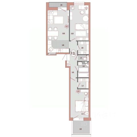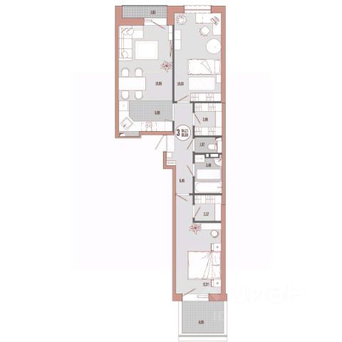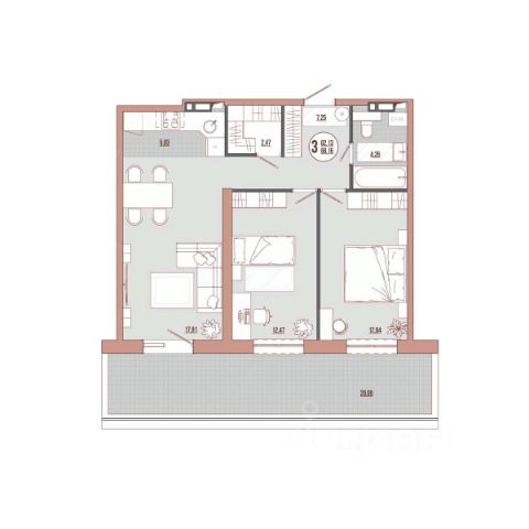 Преимущества: - панорамное остекление балконов; - высота потолков 2,9 м; - оконное остекление увеличенного размера; - широкие коридоры в местах общего пользования; - отапливаемый паркинг; - закрытая территория; - развитая инфраструктура района; - высокая транспортная доступность. Подробнее о ЖК "Горизонт": Жилой комплекс с высокой транспортной доступностью и развитой социальной инфраструктурой микрорайона Баляева состоит из двух 19-этажных корпусов с 3-уровневым отапливаемым подземным паркингом, индивидуальными келлерами на каждом этаже, закрытой придомовой территорией и комплексным видеонаблюдением. Концепция комплекса предусматривает организацию внутреннего двора без машин. Увеличенная территория комфорта представляет собой единое пространство для отдыха с детскими и спортивными площадками, зелёным сквером и элементами ландшафтного дизайна. Квартиры формата Smart Comfort + (смарт-комфорт +) площадью от 32,77 кв. м до 57,45 кв. м предоставляют свободу в реализации планировочных решений, а высота потолков 2,9 м с окнами увеличенного размера и панорамным остеклением балконов обеспечивают высокий уровень естественного освещения и открывают панорамный обзор на город, Амурский залив и Русский мост. Проектом предусмотрены широкие коридоры мест общего пользования 2,82 м и просторный вестибюль площадью 16,34 кв. м. Инвестиционную привлекательность обеспечивает возможность приобретения коммерческой недвижимости со стабильным потоком клиентов для организации бизнеса или сдачи пространств в аренду. Комплекс расположен в непосредственной близости от главной дорожной развязки "Площадь Луговая 3-я рабочая Рудневский мост", остановка "Сельская" в 4 минутах (350 метров) ходьбы, "Баляева" в 3 минутах (350 метров). В пешей доступности: детский сад, средняя школа, лицей, университет, супермаркет, торговый центр, аптека, поликлиника, стоматология, автомобильный сервис, АЗС, фитнес-клуб, школа верховой езды и парк Минного городка. Продам квартиру в микрорайоне Баляева в городе Владивосток.
