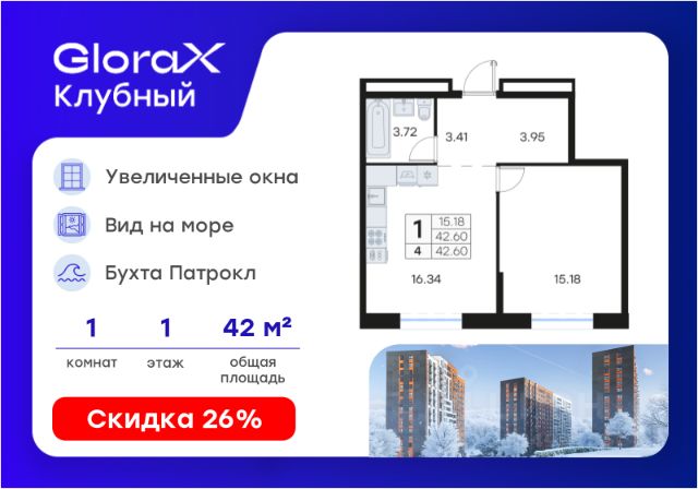 Продается 2-комн. квартира на 7-м этаже в квартале GloraX Клубный. GloraX Клубный - уникальный видовой проект с выделяющейся архитектурой в развитом районе Владивостока. Общая площадь лота составляет 45,63 кв. м, из которых 23,65 кв. м отведено под жилую и 12,09 кв. м под кухонную зону. Номер квартиры - 274. Преимущества квартиры: двухкомнатная квартира; угловая. Преимущества проекта: • Квартиры с панорамными видами на бухту Патрокл, маяк Басаргина и остров Русский • Планировочные решения под любой жизненный сценарий от 23 до 67 м² • Гардеробные комнаты, увеличенные панорамные окна, просторные кухни-гостиные • Эксклюзивное благоустройство: продуманное зонирование, игровые и спортивные площадки, площадка для стритбола, амфитеатр • Премиальный дизайн входных групп с лаунж-зоной • Безбарьерная среда, закрытая территория, видеонаблюдение • Лапомойки, колясочные и туалеты на первом этаже • Двухуровневый подземный паркинг на 350 машино-мест с лифтом на жилые этажи • Келлеры на цокольном этаже для хранения сезонных вещей с доступом на лифте • Современный ландшафтный дизайн комплекса от DEREVOPARK GloraX Клубный заповедник в черте мегаполиса. Комплекс тщательно продуман для максимального удобства и обеспечения безопасности его жителей. Квартал расположен в одном из самых современных развивающихся районов города: совсем рядом раскинулась живописная бухта Патрокл, где можно прогуляться по облагороженной пешеходной набережной, заглянуть на пляж или в школу серфинга. Комплекс имеет прекрасную транспортную доступность: рядом проходит объездная трасса СеданкаПатрокл, а до центар можно доехать всего за 15 минут. Проект включает 3 монолитных корпуса, каждый из которых спроектирован с акцентом на комфорт, безопасность и современный образ жизни рядом с уникальной природой. Общий двор создает приватную территорию для житей комплекса. В комплексе предусмотрен двухуровневый подземный паркинг на 350 машино-мест с доступом прямо с жилых этажей. Паркинг оборудован современными системами видеонаблюдения, контроля въезда-выезда и пожаротушения. На цокольном этаже размещаются келлеры для хранения сезонных и габаритных вещей. Доступ к кладовым на лифте с жилых этажей. Современный ландшафтный дизайн жилого комплекса GloraX Клубный создан ведущей российской студией DEREVOPARK. Во дворе для детей всех возрастов предусмотрены различные игровые площадки с лазалками, батутами, качелями и песочницей. В центре расположен специальный "зеленый остров", где взрослые могут отдохнуть на качелях и гамаках в тени больших деревьев. Для любителей спорта предусмотрены две специальные спортивные площадки для настольного тенниса и стритбола — для зрителей тоже найдется место! А еще на территории комплекса будет дорожка для роллеров и любителей покататься на велосипеде, самокате или скейте. В шаговой доступности располагаются все необходимые объекты социальной и коммерческой инфраструктуры. Цена указана при 100% опл Продам квартиру на улице Катерная в городе Владивосток.