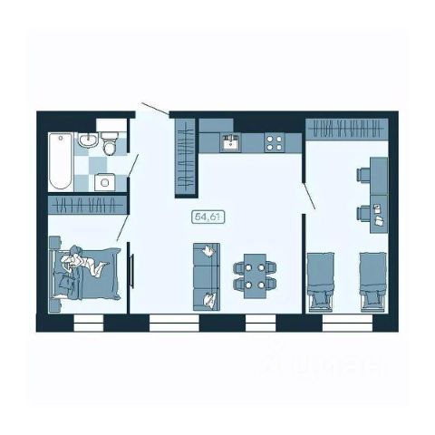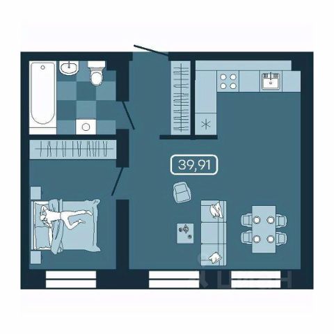 Общая площадь 26,7 кв.м.