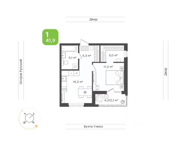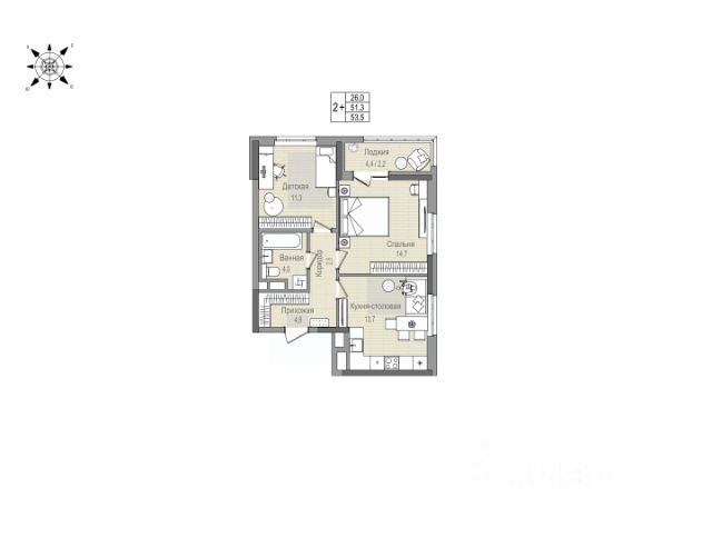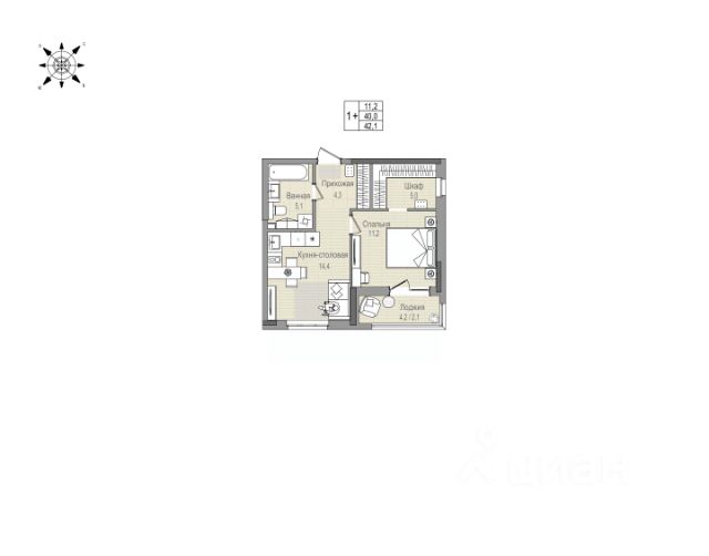 Уютное пространство для самостоятельной жизни Просторная прихожая 5,5 кв.м с местом для шкафа Кухня-столовая 16,8 кв.м место для ваших кулинарных экспериментов и отдыха за домашним кинотеатром Спальня 14,8 кв.м с выходом на лоджию, где можно наслаждаться свежим воздухом и красивым видом на окружающий пейзаж Гардеробная в спальне 2,8 кв.м позволит аккуратно разместить вещи, освободив место в комнате Ванная комната 4,5 кв.м с местом под стиральную машину