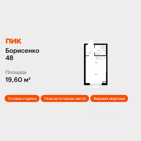 Продаётся квартира-студия площадью 24,1 кв.м на 25 этаже 28 этажного дома (Корпус 2, Секция 2) проекта ПИК Борисенко 48. Светлый просторный подъезд на уровне земли, функциональная планировка, большие окна, предчистовая отделка. "Борисенко 48" - небольшой квартал в Первомайском районе, в 15 минутах пути на автомобиле от центра Владивостока. С верхних этажей откроется живописный вид на город и сопки. В проекте всего четыре дома и подземный паркинг, в который можно будет спуститься на лифте. Высота домов от 17 до 30 этажей - благодаря переменной этажности солнце будет лучше освещать двор и квартиры. На первых этажах откроются пекарни, кафе, магазины и другие сервисы - это удобно, когда внезапно закончится хлеб или захочется побаловать себя горячим кофе. Из каждого дома будет выход в уютный двор-парк - это закрытая территория для отдыха, где растут цветы и деревья, оборудованы детские и спортивные площадки. Рядом с "Борисенко 48" появится также детский сад для 150 малышей. В пешей доступности есть всё необходимое для комфортной жизни: школы, детские сады, поликлиника и магазины. До крупных торговых центров "Калина Молл" и "Луговая", а также супермаркета "Реми" - всего 5 минут на машине. А до озера на Сафонова, которое отлично подходит для прогулок и отдыха, можно дойти пешком за 9 минут. Живописная Леопардовая набережная - в 10 минутах на автомобиле. Из квартала можно будет выехать как на улицу Борисенко, так и на улицу Сафонова. Артикул 923346 (Застройщик ООО "СЗ "Юстина") Продается квартира на улице Борисенко в городе Владивосток.