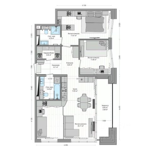 Продается 2-комн. квартира на 10-м этаже в жилом квартале Зелёные высоты от GloraX — проекте в тихой зелёной локации. Общая площадь квартиры 57,80 кв. м, из которых 23,70 кв. м включая 23,70 кв. м жилого пространства и 15,10 кв. м кухни. Номер квартиры - 99. Преимущества квартиры: компактная евро-3; вид на лесопарк; лоджия. Преимущества проекта: • Идеальное сочетание городской и загородной жизни • Сдаем в 2026 году • Уютный зелёный район с развитой инфраструктурой • Великолепные виды на Вечнозеленый сквер и лесопарк на 150 Га • Видеонаблюдение, IP-домофон, Wi-Fi на территории, • Дизайнерские входные группы • Безбарьерная среда, колясочные, туалеты на 1 этаже, лапомойки • Эксклюзивное благоустройство территории • Подземный паркинг на 235 машино-мест с лифтом на жилые этажи • Индивидуальные кладовые от 3 до 7 кв. м • Черновая отделка для реализации любых дизайнерских идей Зелёные высоты — современный жилой проект, сочетающий преимущества городской и пригородной жизни. Комплекс тщательно продуман для максимального удобства и обеспечения безопасности жителей. Квартал расположен в зеленом, живописном и активно развивающемся районе Зеленый Угол, вдали от серой массовой застройки. Жители проекта Зелёные высоты смогут наслаждаться прогулками в Вечнозелёном сквере или лесопарке. В непосредственной близости находятся остановки общественного транспорта и автомобильный подъезд со стороны Нейбута. Скоро также появится выездом на трассу Де-Фриз-Седанка, что обеспечит быстрый доступ в любую часть города и пригород. Проект включает 2 корпуса, каждый из которых спроектирован с акцентом на комфорт, безопасность и современный образ жизни. В комплексе предусмотрен подземный паркинг на 235 машиномест с доступом прямо с жилых этажей. Паркинг оборудован современными системами видеонаблюдения, контроля въезда-выезда и пожаротушения. Цокольный этаж здания отведен под индивидуальные кладовые площадью от 3 до 7 квадратных метров, которые можно использовать для хранения сезонных вещей. Доступ к кладовым - на лифте с жилых этажей. Территория жилого квартала благоустроена и включает игровые зоны и спортивные площадки для детей различных возрастных групп, уютные зоны отдыха со скамейками и универсальную воркаут-площадку для активного досуга. В шаговой доступности располагаются все необходимые объекты социальной инфраструктуры. Узнайте больше в отделе продаж — выберите свою квартиру в проекте Зелёные высоты от GloraX уже сегодня! Продам квартиру на улице Нейбута в городе Владивосток.
