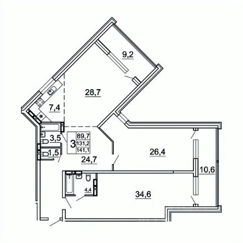Логически разделяется на 3 зоны - общую (прихожая, гостиная, совмещенная с кухней), детскую (две спальни, гардеробная, санузел) и взрослую (спальня, кабинет, гардеробная, санузел, прачечная). В каждой зоне свой балкон - два больших и один поменьше. Балконы с остеклением. Квартира солнечная (восток-юг-запад), тёплая, тихая. Соседей не слышно.