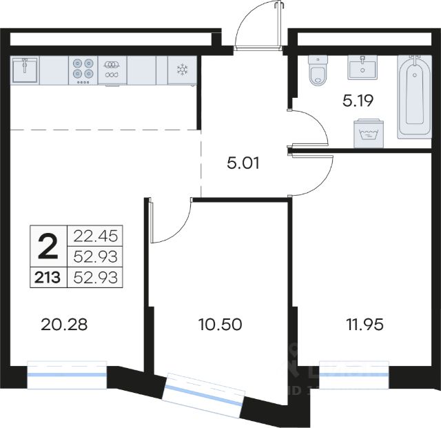 Продается 2-комн. квартира на 1-м этаже в квартале GloraX Клубный. GloraX Клубный - уникальный видовой проект с выделяющейся архитектурой в развитом районе Владивостока. Общая площадь лота составляет 52,93 кв. м, из которых 22,45 кв. м отведено под жилую и 20,28 кв. м под кухонную зону. Номер квартиры - 213. Преимущества квартиры: евро-трехкомнатная квартира. Преимущества проекта: • Квартиры с панорамными видами на бухту Патрокл, маяк Басаргина и остров Русский • Планировочные решения под любой жизненный сценарий от 23 до 67 м² • Гардеробные комнаты, увеличенные панорамные окна, просторные кухни-гостиные • Эксклюзивное благоустройство: продуманное зонирование, игровые и спортивные площадки, площадка для стритбола, амфитеатр • Премиальный дизайн входных групп с лаунж-зоной • Безбарьерная среда, закрытая территория, видеонаблюдение • Лапомойки, колясочные и туалеты на первом этаже • Двухуровневый подземный паркинг на 350 машино-мест с лифтом на жилые этажи • Келлеры на цокольном этаже для хранения сезонных вещей с доступом на лифте • Современный ландшафтный дизайн комплекса от DEREVOPARK GloraX Клубный заповедник в черте мегаполиса. Комплекс тщательно продуман для максимального удобства и обеспечения безопасности его жителей. Квартал расположен в одном из самых современных развивающихся районов города: совсем рядом раскинулась живописная бухта Патрокл, где можно прогуляться по облагороженной пешеходной набережной, заглянуть на пляж или в школу серфинга. Комплекс имеет прекрасную транспортную доступность: рядом проходит объездная трасса СеданкаПатрокл, а до центар можно доехать всего за 15 минут. Проект включает 3 монолитных корпуса, каждый из которых спроектирован с акцентом на комфорт, безопасность и современный образ жизни рядом с уникальной природой. Общий двор создает приватную территорию для житей комплекса. В комплексе предусмотрен двухуровневый подземный паркинг на 350 машино-мест с доступом прямо с жилых этажей. Паркинг оборудован современными системами видеонаблюдения, контроля въезда-выезда и пожаротушения. На цокольном этаже размещаются келлеры для хранения сезонных и габаритных вещей. Доступ к кладовым на лифте с жилых этажей. Современный ландшафтный дизайн жилого комплекса GloraX Клубный создан ведущей российской студией DEREVOPARK. Во дворе для детей всех возрастов предусмотрены различные игровые площадки с лазалками, батутами, качелями и песочницей. В центре расположен специальный "зеленый остров", где взрослые могут отдохнуть на качелях и гамаках в тени больших деревьев. Для любителей спорта предусмотрены две специальные спортивные площадки для настольного тенниса и стритбола — для зрителей тоже найдется место! А еще на территории комплекса будет дорожка для роллеров и любителей покататься на велосипеде, самокате или скейте. В шаговой доступности располагаются все необходимые объекты социальной и коммерческой инфраструктуры. Цена указана при 100% оплате