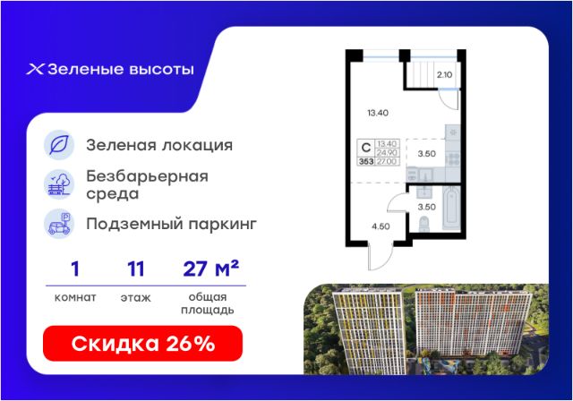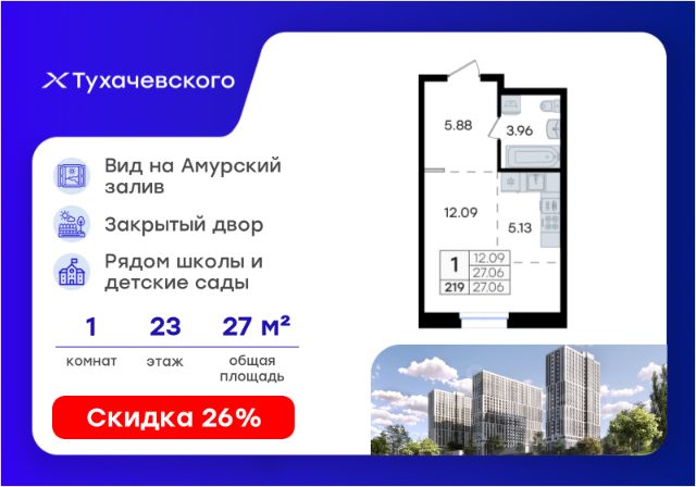 Квартиры в жилом комплексе Зелёный бульвар 2.0 во Владивостоке — вторая очередь строительства флагманского жилого комплекса "Зелёный бульвар". Жилой комплекс "Зелёный бульвар 2.0" — пространство, где природа и комфорт соединяются воедино: Перспективный развивающийся микрорайон — открыт выезд на дорогу Де-Фриз, до центра 15 минут, рядом детский сад, в шаговой доступности планируется строительство новой школы на 1200 мест с собственным бассейном. • Закрытая территория для вашей безопасности • Фонтаны, детские площадки, детский автодром, теннисный корт и гольф-поле создают атмосферу активного и размеренного отдыха • Разнообразное и насыщенное озеленение, более 12 000 растений на территории благоустройства • Пешеходный бульвар протяженностью 1 км с уютными кафе, магазинами, зелёными зонами для отдыха • Светлое лобби с панорамными окнами, мягкими диванами и арт-объектами создаёт уют с порога. Безбарьерная среда обеспечивает комфортный вход для всех, а коляски, велосипеды и самокаты удобно хранить в специальных помещениях на первом этаже • Панорамные балконы с живописными видами • Подземный двухуровневый паркинг с прямым доступом на лифте и два отдельно стоящих многоуровневых паркинга — всего более 1900 мест • Собственная УК "Зелёный бульвар" — лучшая по мнению Urban Awards и Green Property в 2023г Комфортные планировки от студий 19,45 кв.м до 3-комнатных семейных квартир площадью 91,29 кв.м: • Черновая отделка и отделка WhiteBox • Высота потолков от 2,7-3м Более 20 планировочных решений: • студии от 19,45-27,47 кв.м • однокомнатные и евродвухкомнатные квартиры от 35,14-50,54 кв.м • двухкомнатные квартиры от 53,55-71,80 кв.м • трехкомнатные квартиры от 91,06-91,29 кв.м Зелёный бульвар 2.0 — это 7 домов комфорт-класса переменной этажности на территории 6,5 гектаров. Представьте себе двор площадью 1,6 гектара — это как два футбольных поля, где есть всё для жизни и отдыха. Новый формат жилья в комфортной среде. Благоустроенная территория с эксклюзивными детскими площадками. Проект разительно отличается от всего, что предлагается сегодня на рынке новостроек Владивостока — это не традиционные бетонные джунгли, а новый формат жилья в комфортной среде. Трендсеттеры комфортного благоустройства во Владивостоке. Первая очередь жилого комплекса "Зелёный бульвар" — победитель Urban Awards за лучшее благоустройство и инфраструктуру. Способы покупки: -Дальневосточная ипотека -Семейная ипотека -Субсидирование дальневосточной и базовой рыночной ипотеки -Рассрочка на первоначальный взнос -Программы рассрочки от застройщика -Trade-In (программа обмена своей квартиры на новую) О застройщике: СМЕЛО — девелопер нового поколения, перезагрузивший рынок недвижимости Приморья. С момента выхода на рынок мы внедрили смелый подход к проектированию дворов, архитектуре и управлению жильём. В центре внимания — не только строительство, но и создание среды: благоустройство, спорт, озеленение, комфорт жителей.