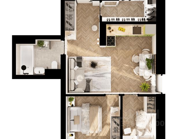 - Квартира с полностью готовой современной отделкой в светлых тонах.