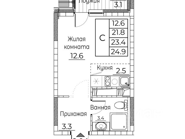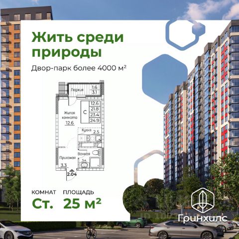 Строим кварталы для жизни с заботой о будущем. Предлагается студия комфорт-класса площадью 21.7 кв.м в корпусе 3КВ на 25-м этаже, в жилом комплексе "Сабанеева 125". Квартиры без отделки. Доступность опции "отделка" и возможность комплектации мебелью и декором уточняйте у застройщика. В варианте без отделки мы установили окна и входную дверь, завели в квартиру коммуникации. Получайте ключи и начните создавать интерьер мечты в новой квартире. Приобрести квартиры возможно по специальным акциям от застройщика, с текущими условиями акций можно ознакомиться в блоке "Акций". Цена динамическая и может отличаться, уточняйте актуальность у застройщика. В жилом комплексе "Сабанеева 125" вы ежедневно будете наслаждаться видами сопок. Холмистый рельеф защищает территорию от ветра. Комплекс расположен в Первореченском районе Владивостока, всего в 20 минутах на машине до центра города. На первых этажах откроются супермаркеты, кафе и пекарни. Для малышей — детский сад в 2 минутах пешком и школа в 10 минутах. За 6 минут можно доехать до Нагорного парка, а за 15 минут — до набережной Цесаревича с панорамой Золотого моста. Комплекс состоит из 3 монолитных домов высотой 25 этажей с фасадами, дизайн которых вдохновлен птицами Дальнего Востока. Дворы оформлены как сад с дальневосточной флорой, есть смотровые площадки, скалодром, перголы и игровые зоны для детей. Подземный паркинг — трехуровневый. В сквозные подъезды без ступеней и с помещением для колясок удобно заходить. В жилом комплексе "Сабанеева 125" есть квартиры с индивидуальными зелеными террасами, увеличенными окнами и панорамными балконами для чаепитий с видом на сопки и залив
