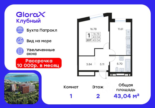 Продается квартира-студия на 12-м этаже в квартале GloraX Клубный. GloraX Клубный - уникальный видовой проект с выделяющейся архитектурой в развитом районе Владивостока. Общая площадь лота составляет 31,12 кв. м, из которых 18,21 кв. м отведено под жилую и 4,25 кв. м под кухонную зону. Номер квартиры - 346.