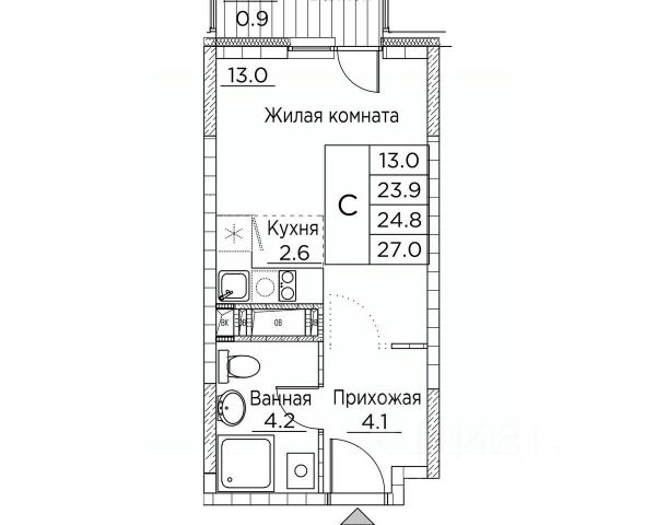 Продается студия с отделкой под ключ в ЖК "Гринхилс". Общая площадь квартиры — 25.8 кв. м, этаж 15 из 18. Тип дома — монолитный. Цена указана при 100% оплате. ЖК "Гринхилс" — жилой квартал комфорт-класса в выгодной локации микрорайона Зеленый угол: развивающегося современного жилого кластера во Владивостоке, внутри которого реализуются проекты нового поколения, преобразуя город. Полный набор необходимой инфраструктуры, транспортная доступность, исторические места города в шаговой доступности, а также окружение леса — все это и есть современный Зеленый угол. ТРАНСПОРНАЯ ДОСТУПНОСТЬ - 15 минут до центра; - 17 минут до ж/д вокзала; - 10 мин до пляжа Патрокл*; - 30 минут до автовокзала; - 50 минут до аэропорта. *В конце 2025 года планируется ввод дороги, соединяющей район с объездной Седанка-ДеФриз-Патрокл. ПЛАНОВЫЙ ВВОД В ЭКСПЛУАТАЦИЮ - 1 корпуса — 2 квартал 2026 года; - 2 и 3 корпусов — 2 квартал 2027 года. АРХИТЕКРУРНЫЕ И ИНЖЕНЕРНЫЕ РЕШЕНИЯ, ПОВЫШАЮЩИЕ КАЧЕСТВО ЖИЗНИ - Приватный безопасный каскадный двор-парк площадью более 4000м2, спроектирован как отдельный архитектурный объект с зонами, включающими в себя целый комплекс оборудования для детей и взрослых, озеленением и современным освещением, благодаря которому будет приятно гулять и отдыхать во дворе в вечернее и ночное время; - Доступ на территорию всего ЖК только для вас и ваших гостей; - Видеонаблюдение по периметру всего ЖК, безбарьерный доступ в дом с обеих сторон и современная домофония; - Дизайнерская отделка мест общего пользования, чтобы было приятно каждый раз, когда приходишь к себе домой; - Предусмотрено место для консьержа, а также туалеты на первых этажах для вашего комфорта; - Колясочные и три современных лифта c прямым доступом к индивидуальным кладовым и паркингу; - Трехэтажный приватный паркинг в 3-м корпусе: широкие проезды, индивидуальные машиноместа, безопасное и комфортное хранение вашего автопарка. МНОЖЕСТВО ПЛАНИРОВОЧНЫХ РЕШЕНИЙ И ВАРИАНТОВ ОТДЕЛКИ - Студии, 1к, 2к, 3к, 4к и квартиры евро-формата спроектированных по стандарту "Эргом2етрика", учитывающие различные сценарии жизни. Для вашего удобства для каждого варианта планировки вы можете выбрать подходящую готовности квартиры: - Без отделки; - Без отделки с выполненной стяжкой пола; - Whitebox — квартира, готовая к декорированию: стены подготовлены дя отделки, проведена электрика с учетом рекомендаций по расстановке мебели и бытовой техники, выровнен пол, в каждой квартире установлена взломостойкая входная дверь; - Whitebox plus — квартира, готовая к декорированию, в которой выполнена полностью отделка санузла; - Квартира с полностью готовой современной отделкой в светлых тонах. Во всех квартирах лоджии имеют панорамное остекление. Для вашего удобства в 1м корпусе открыт демонстрационный этаж, где вы сможете вживую увидеть все варианты отделок квартир. Записывайтесь на показ по контактам в этом объявлении.