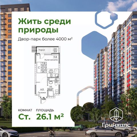 Продается студия с черновой отделкой в ЖК "Гринхилс". Общая площадь квартиры — 27.2 кв. м, этаж 15 из 20. Тип дома — монолитный. Цена указана при 100% оплате. ЖК "Гринхилс" — жилой квартал комфорт-класса в выгодной локации микрорайона Зеленый угол: развивающегося современного жилого кластера во Владивостоке, внутри которого реализуются проекты нового поколения, преобразуя город. Полный набор необходимой инфраструктуры, транспортная доступность, исторические места города в шаговой доступности, а также окружение леса — все это и есть современный Зеленый угол. ТРАНСПОРНАЯ ДОСТУПНОСТЬ - 15 минут до центра; - 17 минут до ж/д вокзала; - 10 мин до пляжа Патрокл*; - 30 минут до автовокзала; - 50 минут до аэропорта. *В конце 2025 года планируется ввод дороги, соединяющей район с объездной Седанка-ДеФриз-Патрокл. ПЛАНОВЫЙ ВВОД В ЭКСПЛУАТАЦИЮ - 1 корпуса — 2 квартал 2026 года; - 2 и 3 корпусов — 2 квартал 2027 года. АРХИТЕКРУРНЫЕ И ИНЖЕНЕРНЫЕ РЕШЕНИЯ, ПОВЫШАЮЩИЕ КАЧЕСТВО ЖИЗНИ - Приватный безопасный каскадный двор-парк площадью более 4000м2, спроектирован как отдельный архитектурный объект с зонами, включающими в себя целый комплекс оборудования для детей и взрослых, озеленением и современным освещением, благодаря которому будет приятно гулять и отдыхать во дворе в вечернее и ночное время; - Доступ на территорию всего ЖК только для вас и ваших гостей; - Видеонаблюдение по периметру всего ЖК, безбарьерный доступ в дом с обеих сторон и современная домофония; - Дизайнерская отделка мест общего пользования, чтобы было приятно каждый раз, когда приходишь к себе домой; - Предусмотрено место для консьержа, а также туалеты на первых этажах для вашего комфорта; - Колясочные и три современных лифта c прямым доступом к индивидуальным кладовым и паркингу; - Трехэтажный приватный паркинг в 3-м корпусе: широкие проезды, индивидуальные машиноместа, безопасное и комфортное хранение вашего автопарка. МНОЖЕСТВО ПЛАНИРОВОЧНЫХ РЕШЕНИЙ И ВАРИАНТОВ ОТДЕЛКИ - Студии, 1к, 2к, 3к, 4к и квартиры евро-формата спроектированных по стандарту "Эргом2етрика", учитывающие различные сценарии жизни. Для вашего удобства для каждого варианта планировки вы можете выбрать подходящую готовности квартиры: - Без отделки; - Без отделки с выполненной стяжкой пола; - Whitebox — квартира, готовая к декорированию: стены подготовлены дя отделки, проведена электрика с учетом рекомендаций по расстановке мебели и бытовой техники, выровнен пол, в каждой квартире установлена взломостойкая входная дверь; - Whitebox plus — квартира, готовая к декорированию, в которой выполнена полностью отделка санузла; - Квартира с полностью готовой современной отделкой в светлых тонах. Во всех квартирах лоджии имеют панорамное остекление. Для вашего удобства в 1м корпусе открыт демонстрационный этаж, где вы сможете вживую увидеть все варианты отделок квартир. Записывайтесь на показ по контактам в этом объявлении.