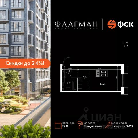 Продается квартира-студия на 7-м этаже в жилом комплексе Тухачевского от GloraX — современном проекте нового формата в престижном районе Владивостока. Общая площадь лота составляет 29,47 кв. м, из которых 13,56 кв. м отведено под жилую и 5,13 кв. м под кухонную зону. Номер квартиры - 48.