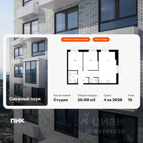 Продаётся квартира-студия площадью 20 кв.м на 8 этаже 25 этажного дома (Корпус 3, Секция 1) проекта ПИК Снежный парк. Светлый просторный подъезд на уровне земли, функциональная планировка, большие окна, предчистовая отделка. Жилой квартал "Снежный парк" возводится в развитом микрорайоне Владивостока - Снеговой Пади. Рядом уже есть всё для комфортной жизни: 2 школы, детская и взрослая поликлиники, торговый центр и магазины. Проект будет состоять из 7 корпусов, высота которых от 24 до 29 этажей. Благодаря низкой плотности застройки жители будут чувствовать себя комфортно. За счёт переменной этажности в квартиры будет попадать ещё больше естественного света. Из окон последних этажей будет открываться панорамный вид на Амурский залив и лес. В квартирах предусмотрены большие окна, застеклённые балконы и лоджии - будет светло и уютно даже зимой. В жилом квартале появится уникальное общественное пространство с пешеходным бульваром и зонами для отдыха. На первых этажах откроются кафе, магазины и полезные сервисы, куда можно спуститься за горячим кофе или свежеиспечённым хлебом. Из каждого дома будет выход в уютный двор-парк с современными детскими и спортивными площадками. Здесь мы посадим цветы и деревья: будет приятно отдыхать или почитать книгу. Артикул 785859 (Застройщик ООО "СЗ ФОРМУЛА-ДВ")