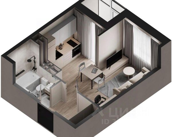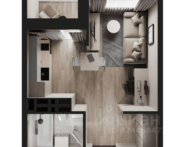зонируемая студия; лоджия.