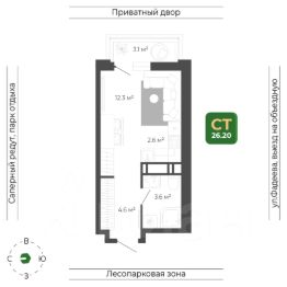Комфортные планировки от студий 19,45 кв.м до 3-комнатных семейных квартир площадью 91,29 кв.м:
