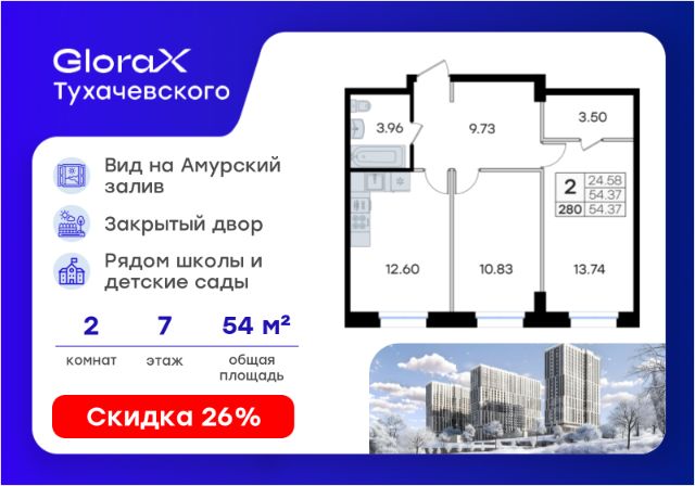 Продается уютная квартира-студия на 21-м этаже в жилом комплексе GloraX Видный — современном проекте комфорт-класса в развитом районе Владивостока. Квартира с окнами, ориентированными на восток, — отличный выбор для тех, кто ищет компактное жилье с максимальным уровнем комфорта и удобства. Общая площадь лота составляет 32,89 кв. м, из которых 24,62 кв. м отведено под жилую и кв. м под кухонную зону. Наличие лоджии расширяет возможности для отдыха и созерцания прекрасного вида на город и природу. Номер квартиры - 240. Квартира станет удачным выбором для тех, кто любит просыпаться вместе с солнцем и наслаждаться спокойствием утра перед началом активного дня. Это идеальное сочетание комфорта, стиля и гармонии с природой. Преимущества проекта: • Дом сдан — ключи можно получить в день оплаты • Современная архитектура и 24 этажа монолитного комфорта • Спокойный район с готовой инфраструктурой и удобной транспортной доступностью • Подземный паркинг на 284 машиноместа с видеонаблюдением и доступом на лифте с жилых этажей • Индивидуальные келлеры от 2,3 до 7,9 м² на подземном уровне • Просторные входные группы с дизайнерской отделкой и помещениями для хранения колясок • Двор без машин: благоустроенная территория, детские и спортивные площадки, зоны отдыха • Коммерческие помещения на первых этажах — магазины, кофейни, пекарни прямо у дома • Авторский ландшафтный проект с освещением, озеленением и зонированием Проект GloraX Видный — это городское пространство нового формата, где каждый элемент продуман для комфорта современных жителей. Комплекс расположен на улице Карбышева — в тихом, но развитом районе Владивостока. В шаговой доступности — детские сады, школы, магазины, кафе, аптеки и остановки общественного транспорта. Удобный выезд на городские магистрали позволяет быстро добраться до центра, автовокзала (5 км), парка Покровского (8 км) и международного аэропорта (45 км). Архитектура жилого дома воплощает современные тенденции градостроительства и отражает стремление к гармонии с окружающей средой. Этот проект представляет собой идеальное сочетание комфорта, безопасности и удобств для полноценной семейной жизни. Узнайте подробности и подберите свою квартиру в GloraX Видный — в отделе продаж уже сегодня. Цена указана при 100% оплате или стандартной ипотеке.